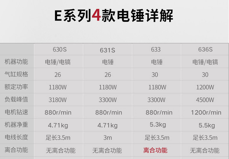 鉆孔能力:混凝土26mm 工作方式:錘鉆,鏟鑿